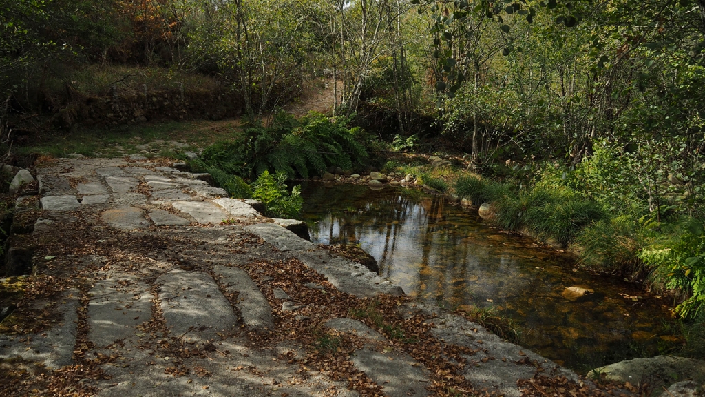 Ferreiros pasando antes por un pontón histórico en el riachuelo de Medán. Desde Ferreiros seguimos el camino, que en tramos está enlosado y entre muros, hasta llegar al pontón de